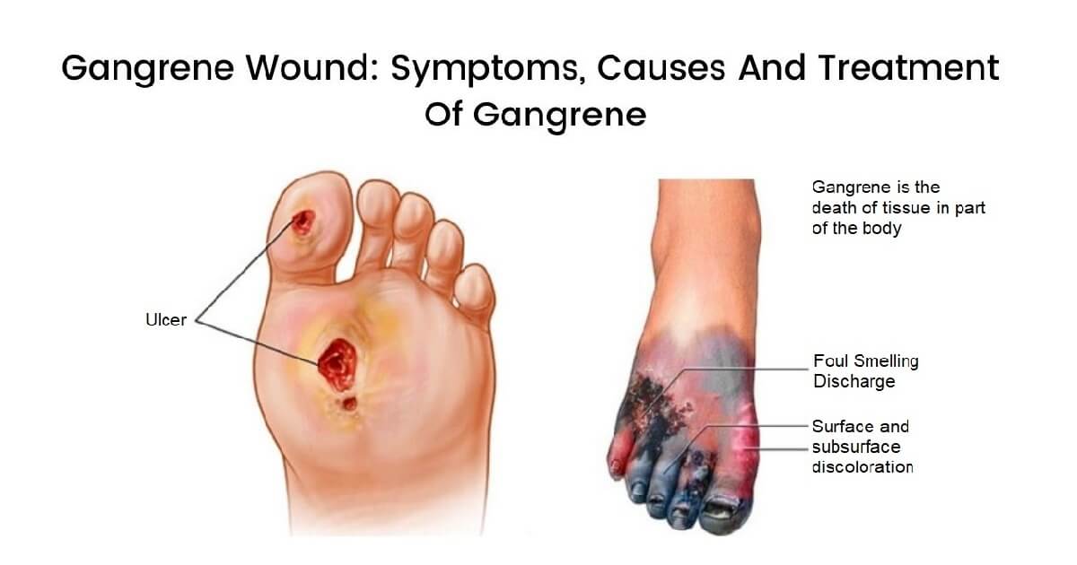 Gangrene occurs when blood flow to a specific area is restricted or blocked, leading to tissue death. Gangrene affecting the toes can be a consequence of various factors, including diabetes, vascular diseases, or trauma. Immediate intervention is crucial to prevent further complications.